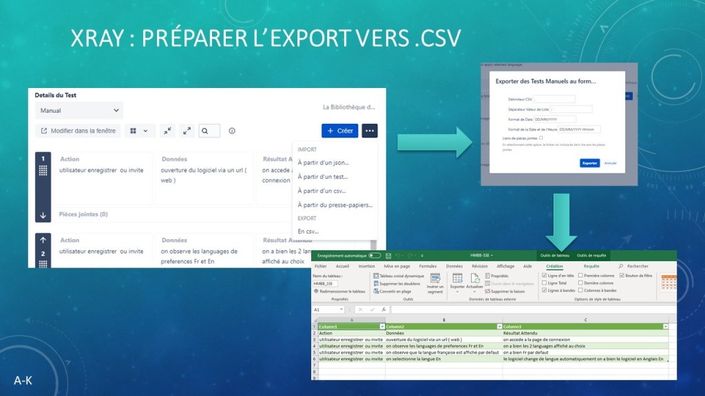 Sur Xray, sélectionner « Exporter en .csv » puis cliquer sur « exporter »
