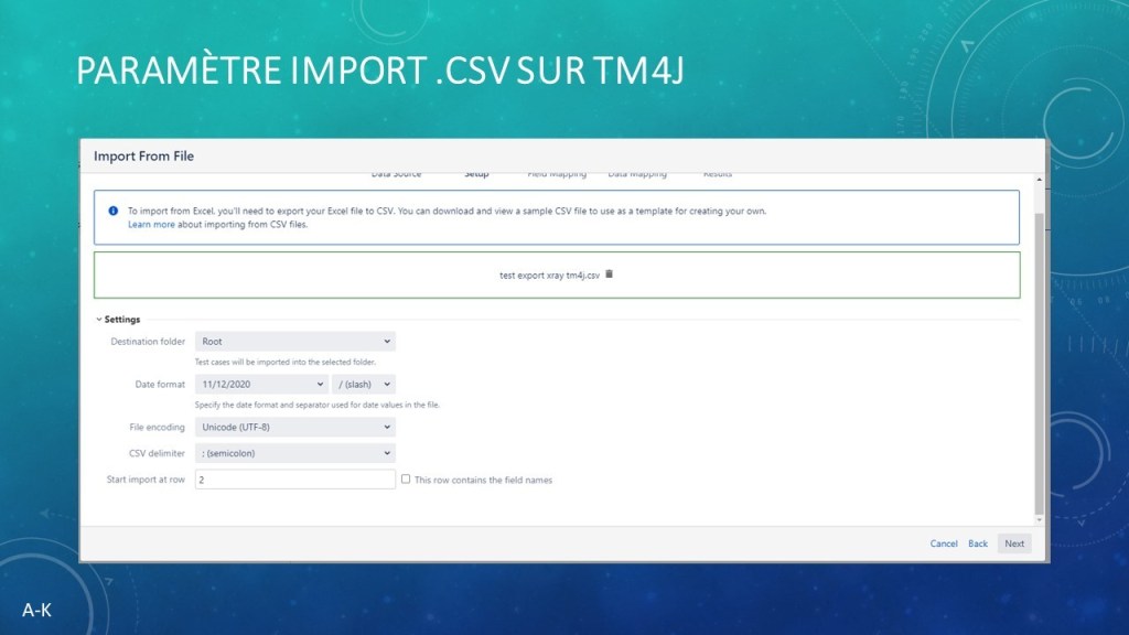 L’étape suivante est de créer un fichier .csv au format TM4J, c’est-à-dire, les champs correspondant à l’outil destinataire.