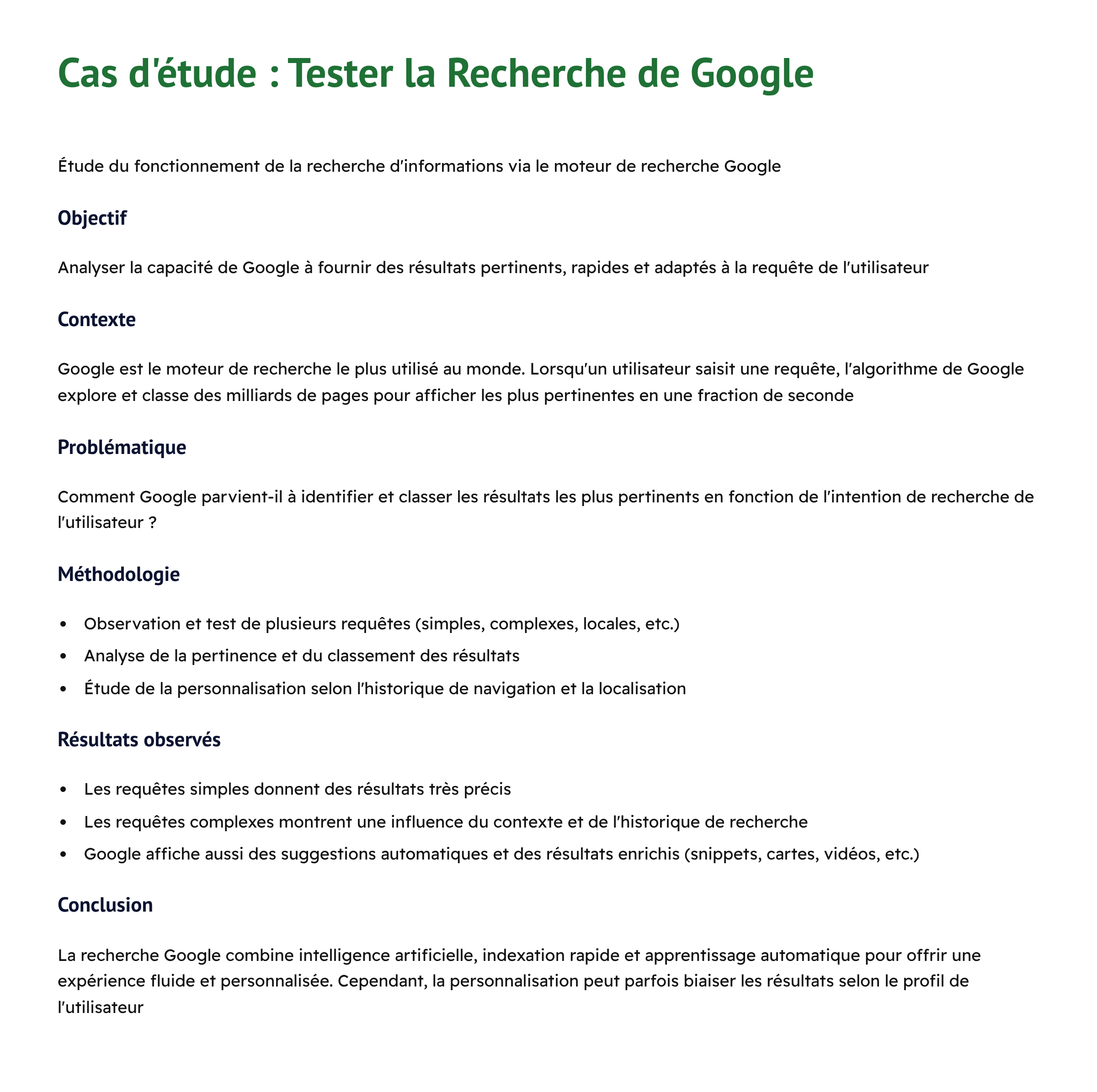 Les cas de test peuvent être classifiés comme génériques (couvrant une large fonctionnalité) ou spécifiques (détaillant un comportement précis). Peu importe la classification, leur lecture doit être fluide, simple, compréhensible et méthodique.